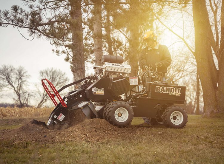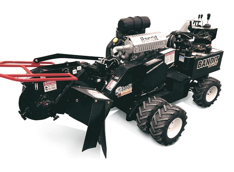 Die Bandit Baumstumpffräse ist selbstfahrend und verfügt über Gummireifen . Diese sorgen für optimale Traktion , ohne den Boden zu beschädigen. Dies gilt für alle Oberflächenbeschaffenheiten, wie Sand oder nassen Boden . Ein Ausgleichsventil verhindert zudem, dass die Maschine beim Fräsen zurückrollt.