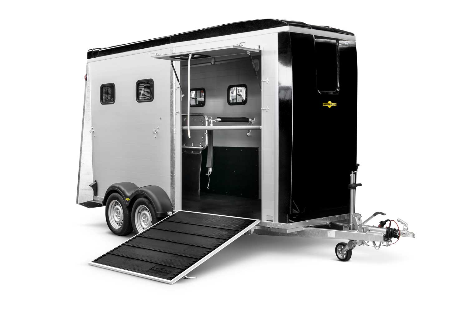 Wer große Tiere transportieren muss, liegt hier genau richtig: Mit einer Innenhöhe von 2.400 mm bietet der NOTOS Xtra Pro besonders viel Kopffreiheit. Ebenso großzügig dimensioniert ist die Sattelkammer. Getönte Schiebefenster und das serienmäßige Windschott sorgen für beste Licht- und Klimaverhältnisse auf der Reise.
