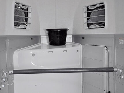 Dank des geringen Gewichts (je nach Modell zwischen 830 und 909 kg) sind die XANTHOS-Modelle besonders anwenderfreundlich im Handling. Alu-Aufbau und Poly-Dach sind die Basis für großzügige Platzverhältnisse für zwei Pferde. Eine Sattelkammer ist optional verfügbar.